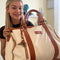 I love this bag! It's pretty, VERY roomy, and it is well-made. HOWEVER, I traveled out of the country with this as my (only) carry-on bag and regretted it quickly. I wish the long carrying strap was padded, then it would have been much more comfortable to carry around. It attached well to my rolling suitcase when checking in and picking up my suitcase, but otherwise it was uncomfortable to tote around. Next time I'll have to go back to using a backpack for air travel, but I will definitely use this pretty bag for other things.